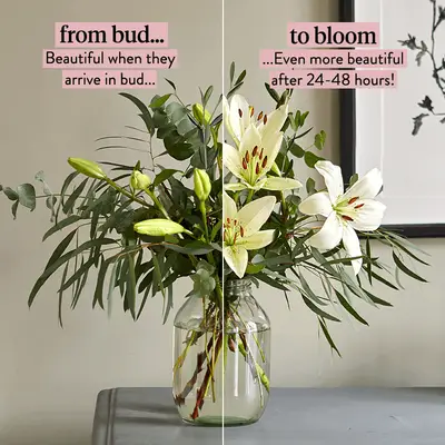 We denken dat het beter is om onze bloemen te sturen terwijl ze nog steeds knoppen zijn omdat het de meest verse manier is. Dit betekent dat u ook kunt genieten van al uw boeketleven. Om de bloemen te bloeien, kan het een dag of twee duren - ze zullen het sneller maken als hun stengels andersom zijn en ze zullen veel vers, schoon water hebben.